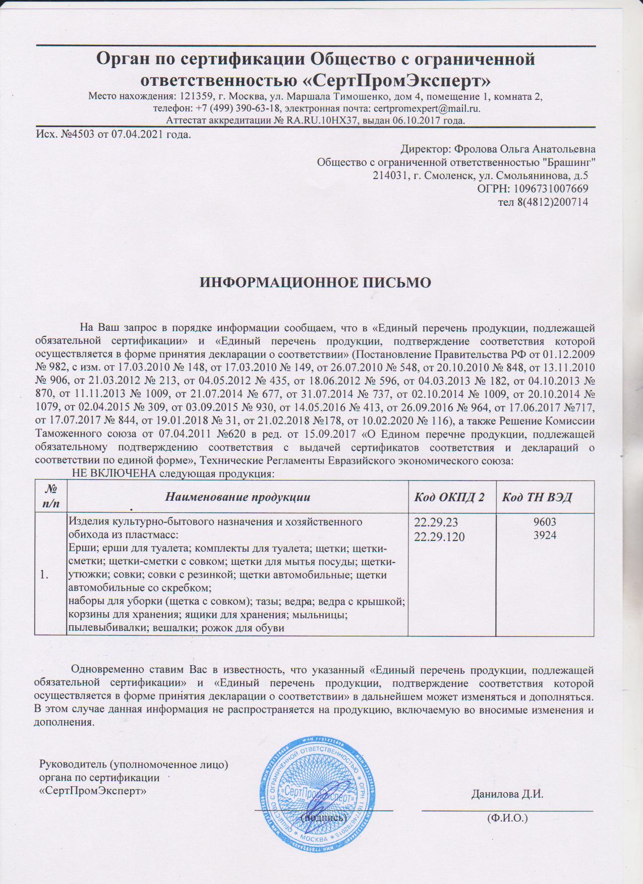 сертификаты Брашинг