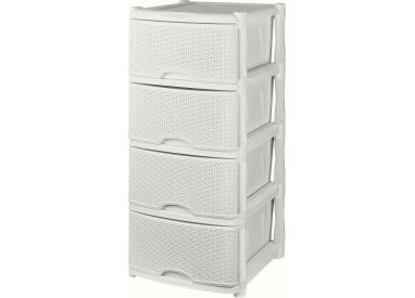Комод широкий Плетенка 4-х секционный (слоновая кость)(уп1)