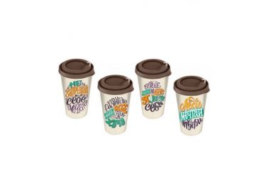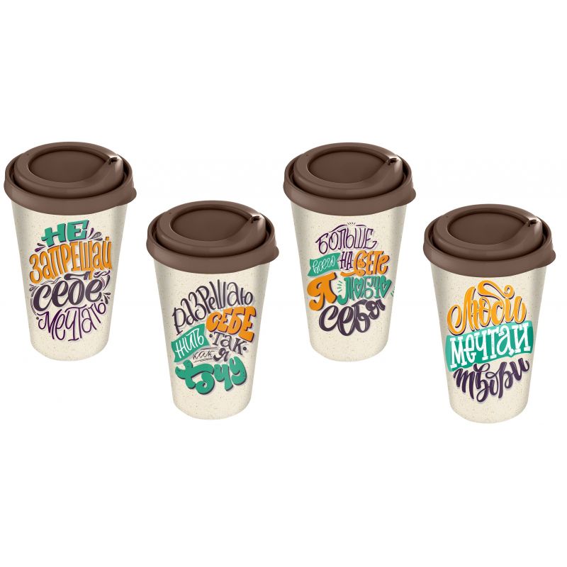 Стакан с крышкой 420мл с декором cats and owls (темно-коричневый)