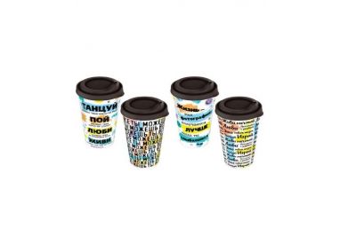 Стакан с крышкой 420мл с декором cats and owls (темно-коричневый)