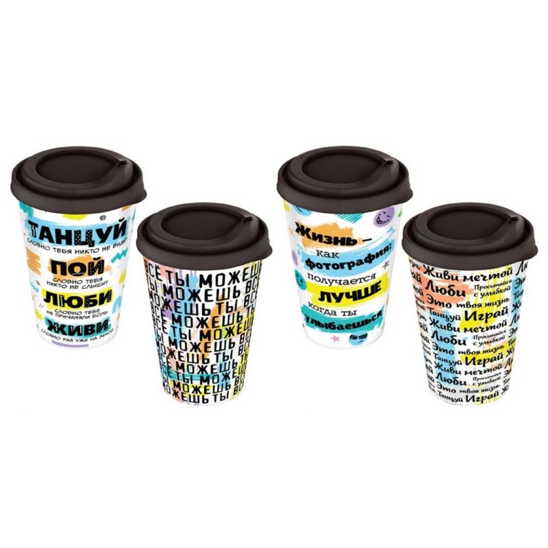 Стакан IZI-GO с крышкой 420мл с декором (черный)