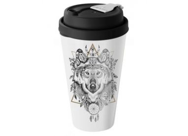 Стакан с крышкой 550мл с декором с клапаном (черный)