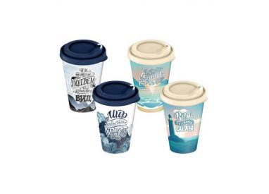 Стакан IZI-GO с крышкой 420мл с декором (черный)