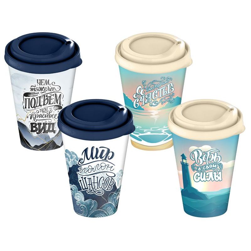 Стакан с крышкой 550мл с декором с клапаном (черный)