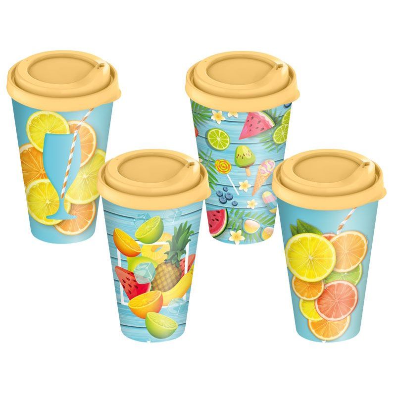 Стакан IZI-GO с крышкой 420мл с декором (черный)