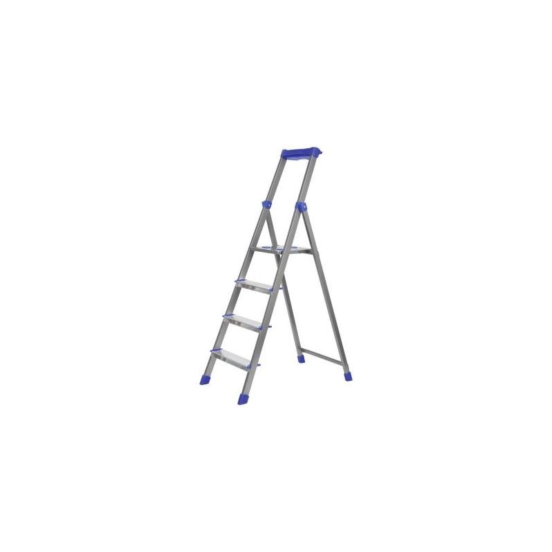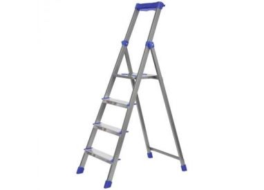 Стремянка комбинированная 4ст. из профильной трубы 40х20мм, с шир. ступенями-алюминий, с лотком для