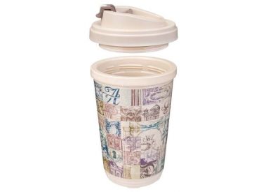 Стакан для горячих и холодных напитков с крышкой 400мл с декором ГОРОДСКИЕ ФАНТАЗИИ (белый)