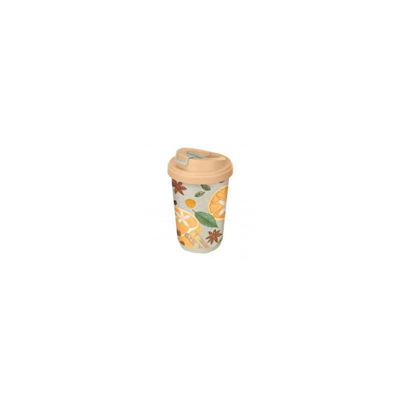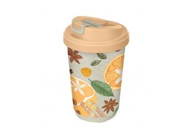 Стакан для горячих и холодных напитков с крышкой 550мл с декором и рельефом (желтый)