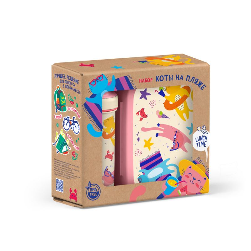 Набор: Ланч-бокс 0,98л + Стакан детский с крышкой,петлей и декором 0,4л (Розовый)