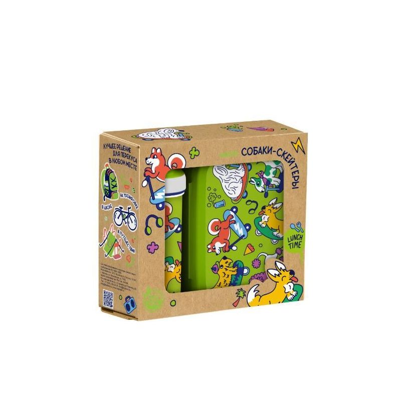 Набор: Ланч-бокс 0,98л + Стакан детский с крышкой,петлей и декором 0,4л (Зеленый-Белый)